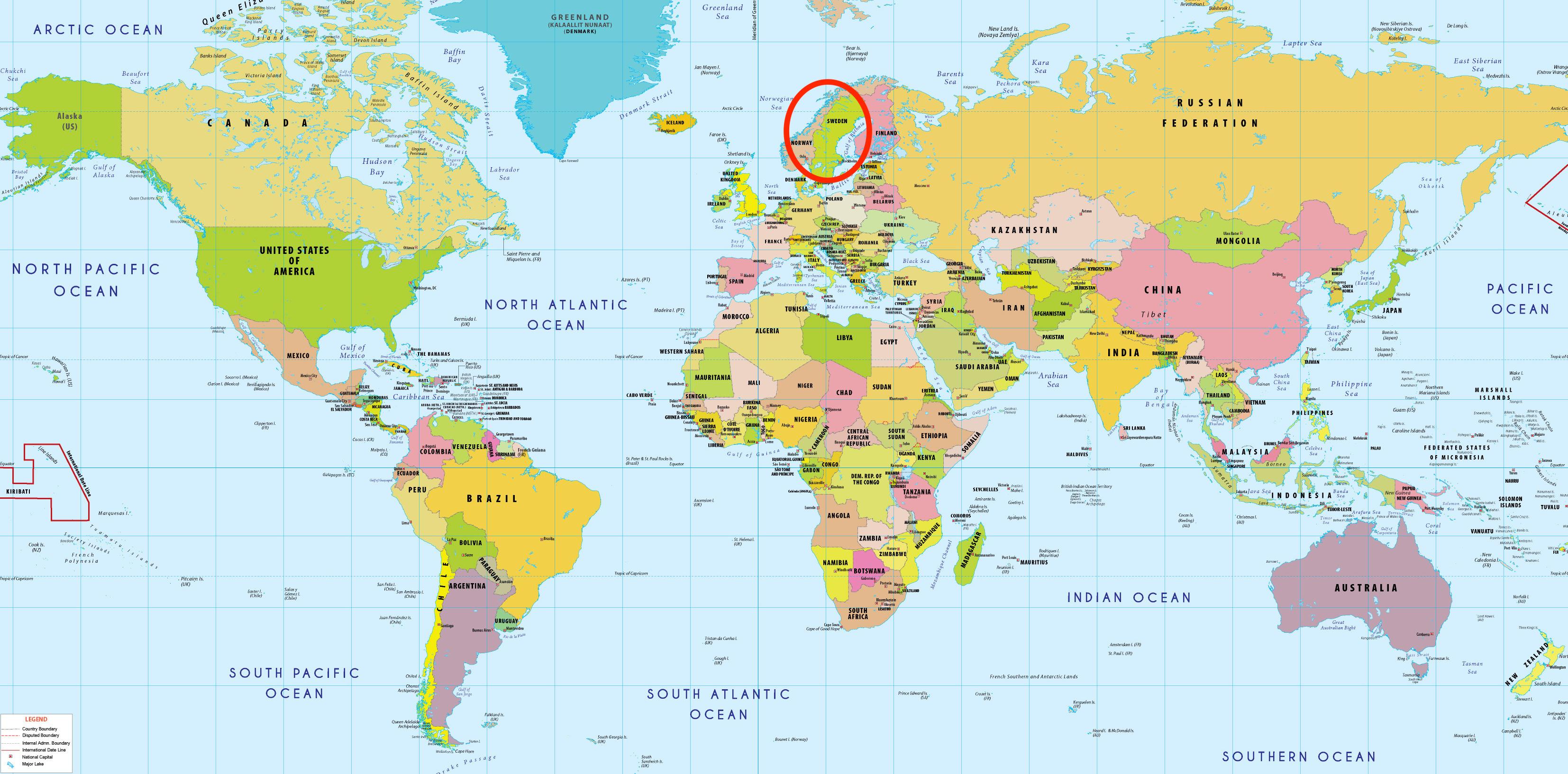 スウェーデンの世界地図